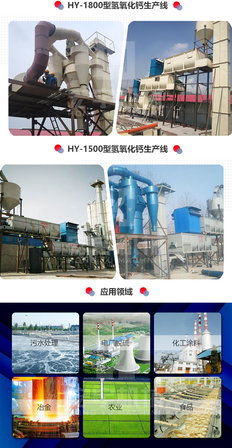 在此背景下,我公司所生產(chǎn)的HY-1200型、HY-1500型、HY-1800型等氫氧化鈣設備已實現(xiàn)***化控制和在線實時檢測,整套生產(chǎn)線符合要求,產(chǎn)品細度從200目-600目不等.單機產(chǎn)量從3T/h------30T/h不等,可根據(jù)用戶不同要求完成不同方案。產(chǎn)品質(zhì)量符合行業(yè)要求。